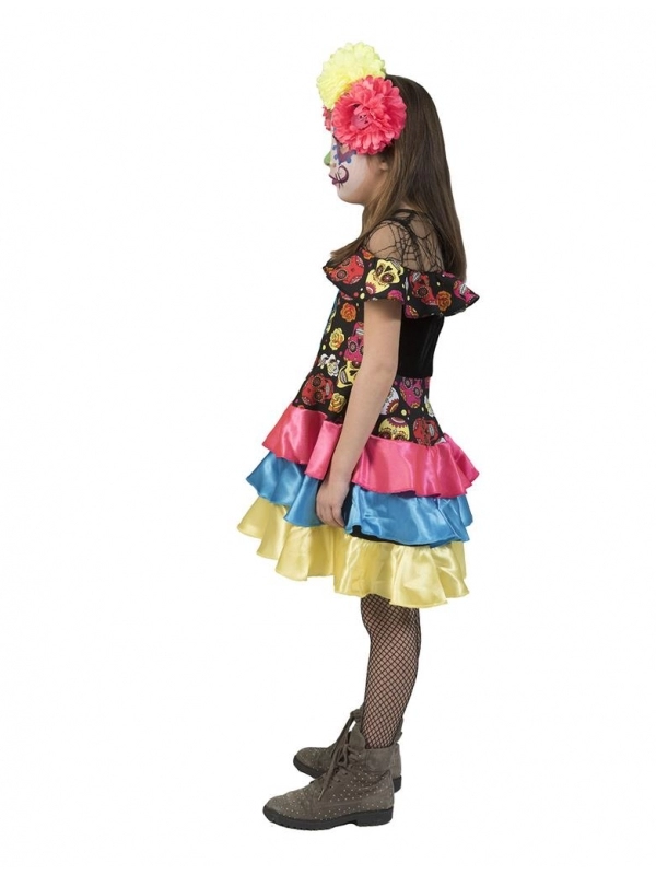 Avec ce déguisement jour des morts, vous avez un large choix d’accessoires que vous pourrez associer mais également du maquillage, jour des morts que vous trouverez dans la catégorie maquillage Halloween