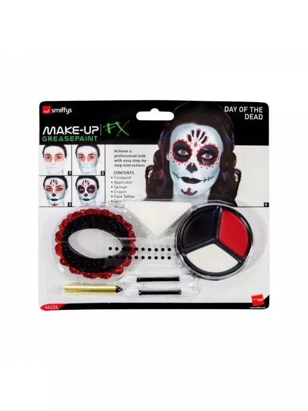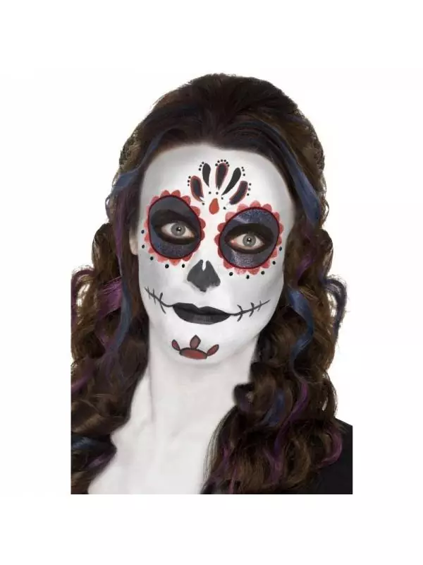 Kit Maquillage Jour De La Mort (maquillage Visage, Tatouages, Pierres Précieuses Autocollantes, Crayon, Applicateur)