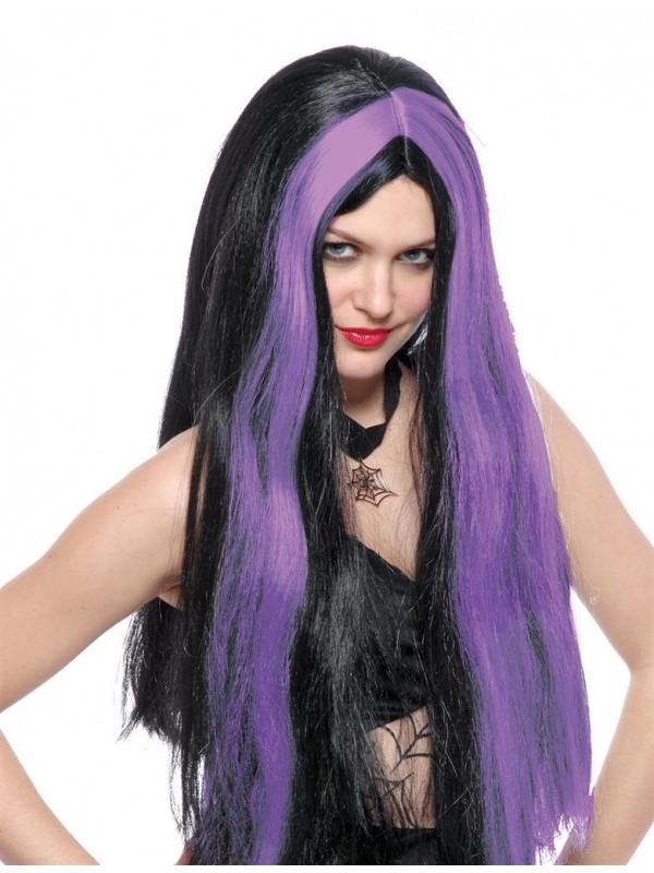 Pour une touche de magie noire lors de la fête d’Halloween, optez pour la perruque sorcière pour femme noir & violet. Cette perruque longue et bicolore fera de vous un personnage sulfureux et mystérieux.