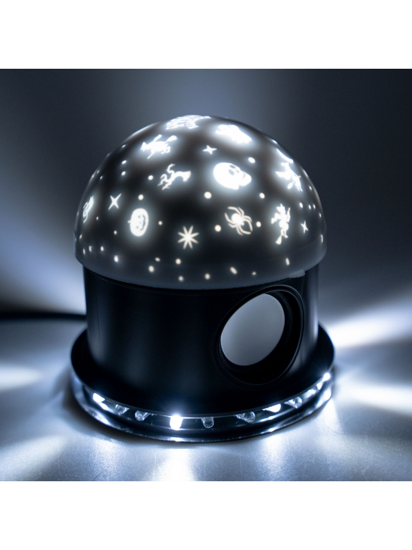 La boule disco projecteur Halloween est un accessoire indispensable pour une soirée d’Halloween réussie. Elle projette des motifs effrayants tels que des sorcières, des crânes, des araignées et des citrouilles sur le plafond et les murs, accompagnés d’effets sonores étranges. C’est un gadget atmosphérique qui surprendra et effraiera vos invités, enfants comme adultes.