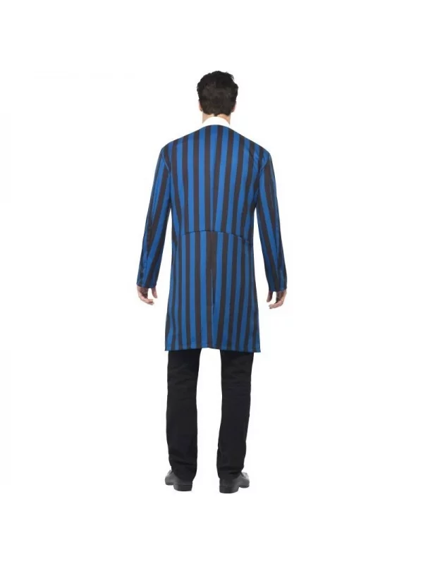 Le déguisement consiste en une longue veste rayée bleue et noir avec une chemise attachée et un noeud-papillon.