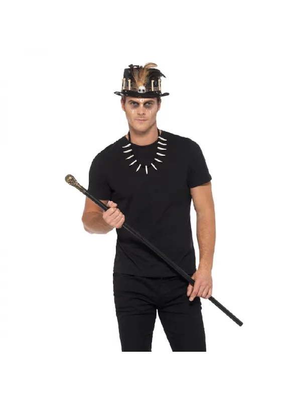 Kit adulte Vaudou pour Halloween: Haut de forme, collier et canne terrifiants