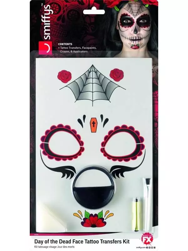 Pour Halloween, nous vous proposons d’effrayer vos amis avec ce kit tatouage jour des morts rouge et noir. L’allure que ce kit va vous apporter fera sûrement peur à n’importe qui.