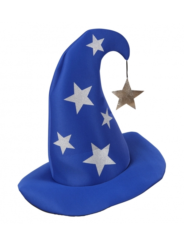 Chapeau magicien médiéval adulte, bleu avec des étoiles argents