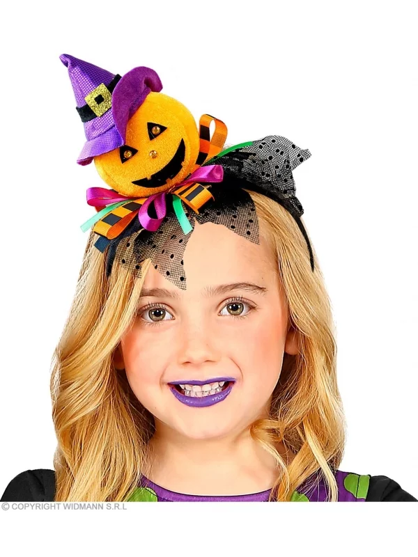 Pas le temps de vous déguiser pour la soirée Halloween à laquelle vous êtes invitée et si vous portiez ce serre-tête qui représente à la fois la sorcière avec le petit chapeau violet et la citrouille orange.