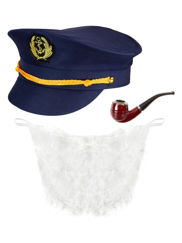 Interpréterez un vrai capitaine de la marine avec ce set complet. Comprend la casquette avec écusson, la pipe et la barbe blanche.